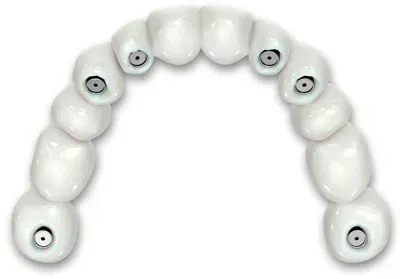 The 3 on 6™ was developed in 2012 and was designed to correct some of the problems of the All-on-X style restorations. Most notably, All-on-X restorations generally require removal of bone from the patient's mouth to make room for the bulky acrylic gums. The 3 on 6™ on the other hand only restores the teeth and preserves the patient's bone. It is a more conservative and hygienic approach to full mouth restoration and functions and feels more natural for the patient.