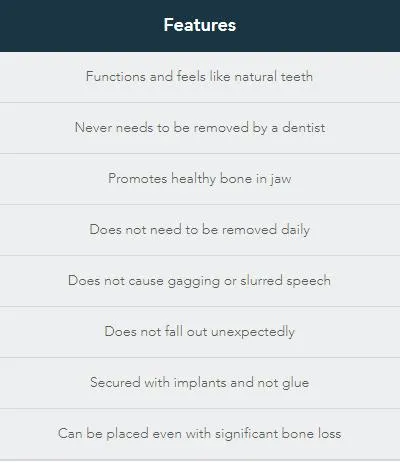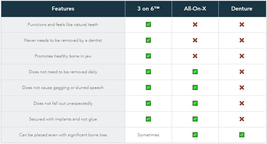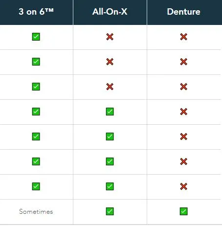 Healthy bone in your jaw doesn't need to be removed to fit the 3 on 6 bridges. No diet restrictions after finals.