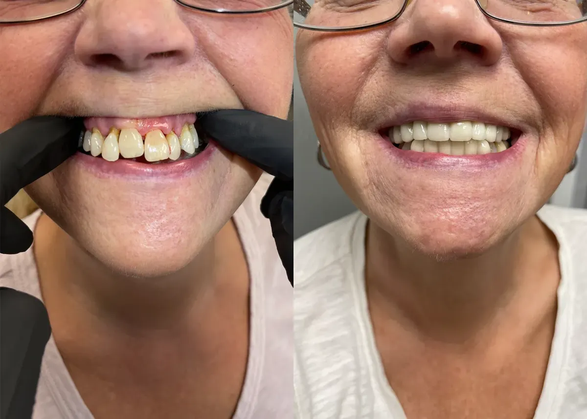 The natural gum line is used in a 3 on 6. Made to enhance the natural beauty of the face.